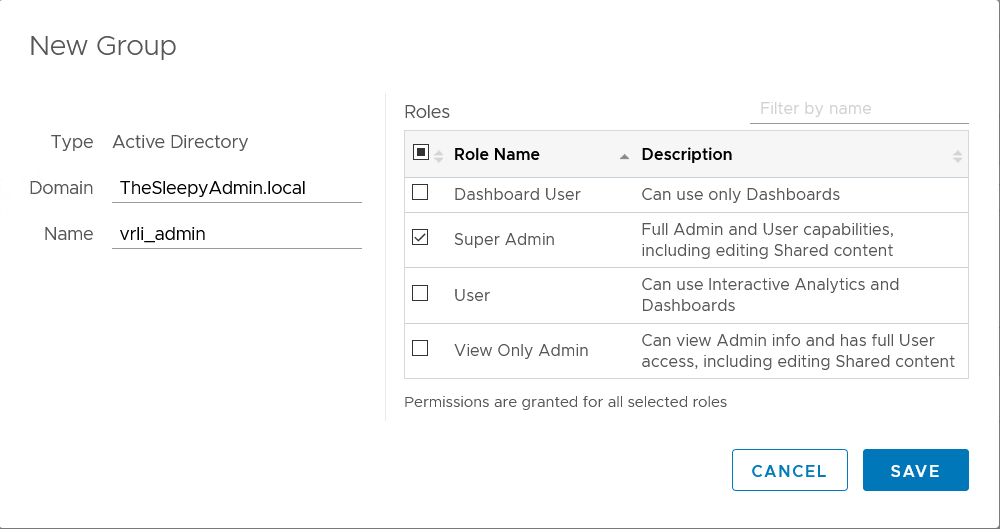 Part 2: VMware vRealize Log Insight AD Authentication and Role Based Access – TheSleepyAdmins