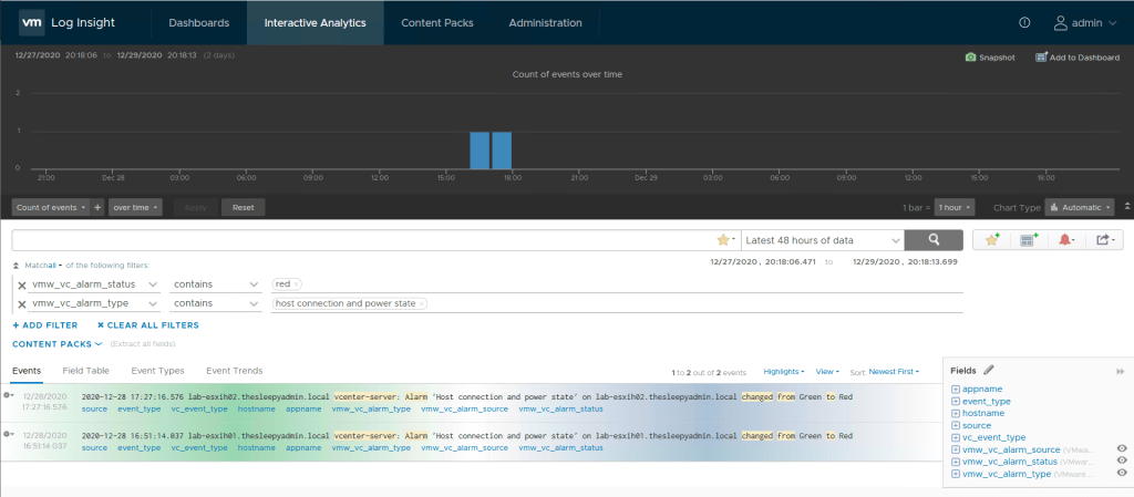 In the below we are going to query any hosts that have disconnected over the last 48 hours. Below are the two filters I used for the host disconnections.