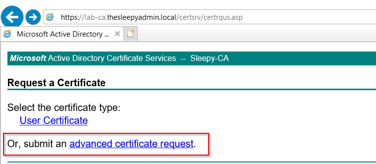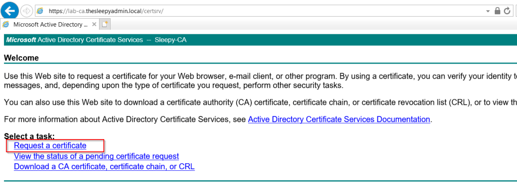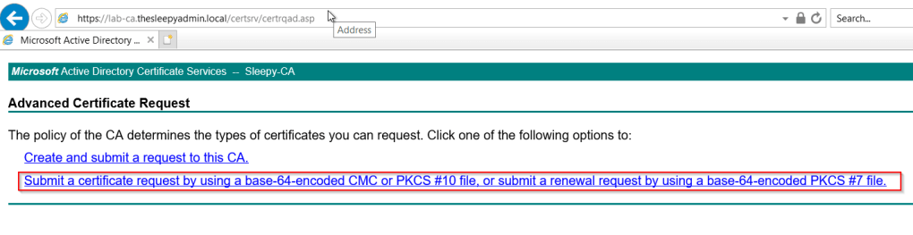 Adding a certificate requires that there is a internal certificate authority that can be used to issue the certificate or we could use a public CA but there would be a cost to that, in this example we will be using a Windows Server CA.