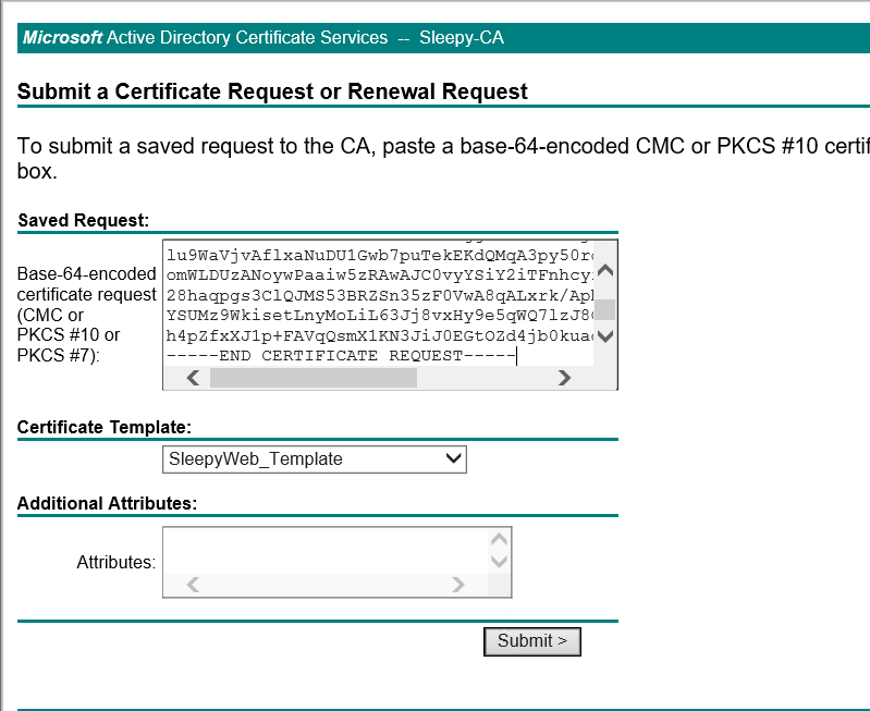 Copy the .csr file as this will be used to generate the cert from the internal CA.
