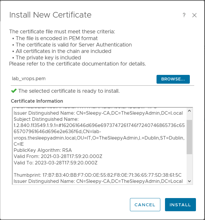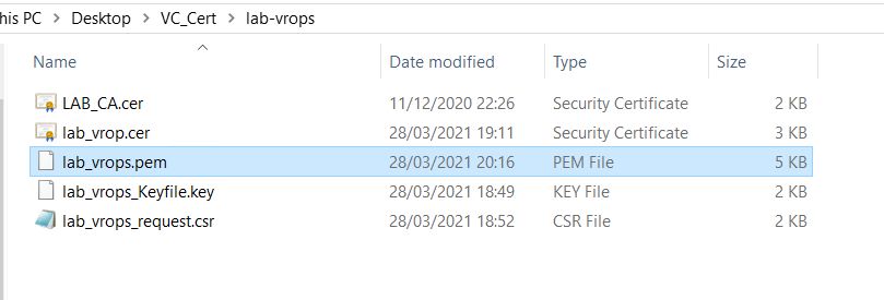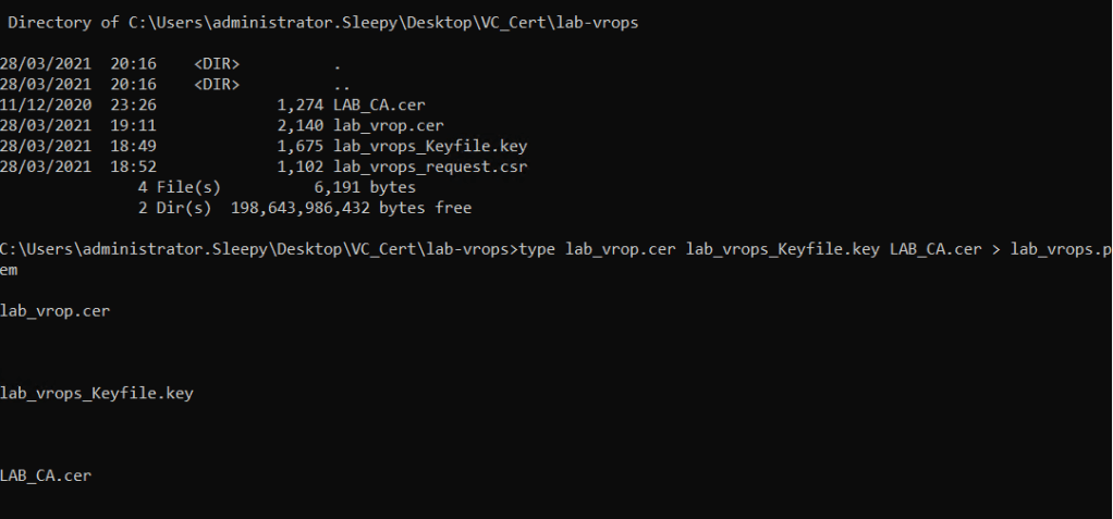 Once all the cert files and key file are created, they now need to be combined to a .PEM format as that is the required format for vrops.