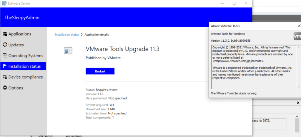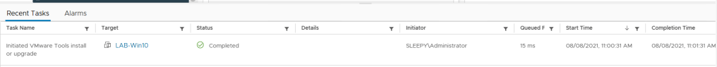 After the upgrade completes the version of VMware tools should be 11.3 and will prompt for reboot if required.