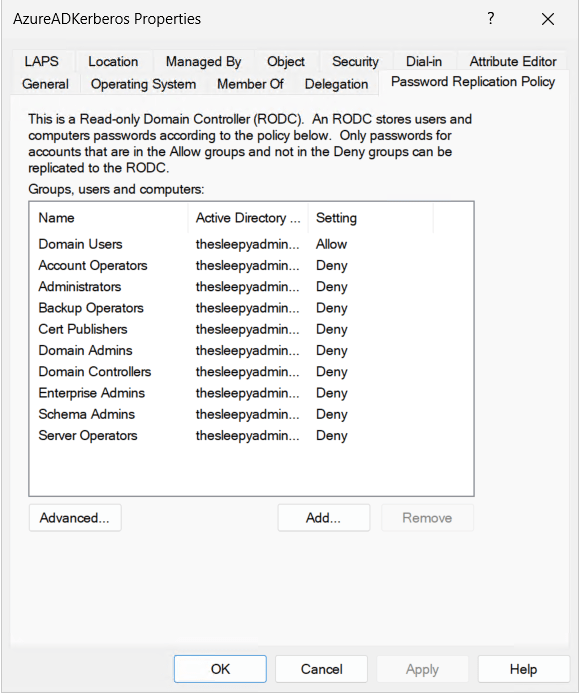 One thing to note is that if your account is part of a privileged group in AD, your password wont be replicated to this new object. We can check the group by going to the AD object and password replication tab. If your account is in any of the deny group you wont be issued Kerberos tickets.