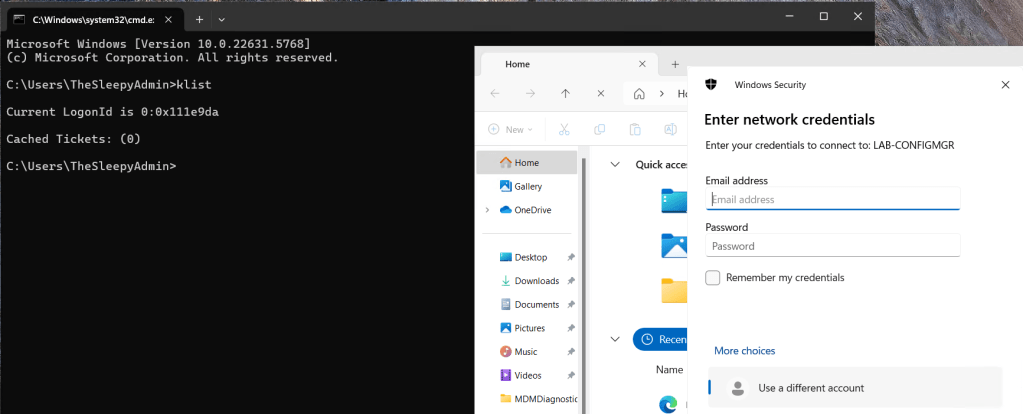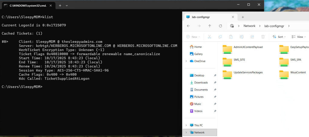 On the next logon if we check we should now be able to connect to onprem resources and get issued Kerberos tickets.