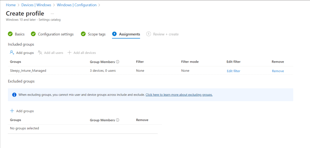 I left scope as defualt and apply the policy to my Intune Managed group.