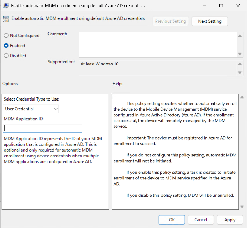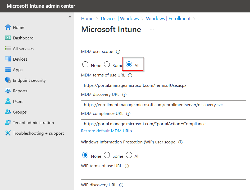 I left scope as defualt and apply the policy to my Intune Managed group.