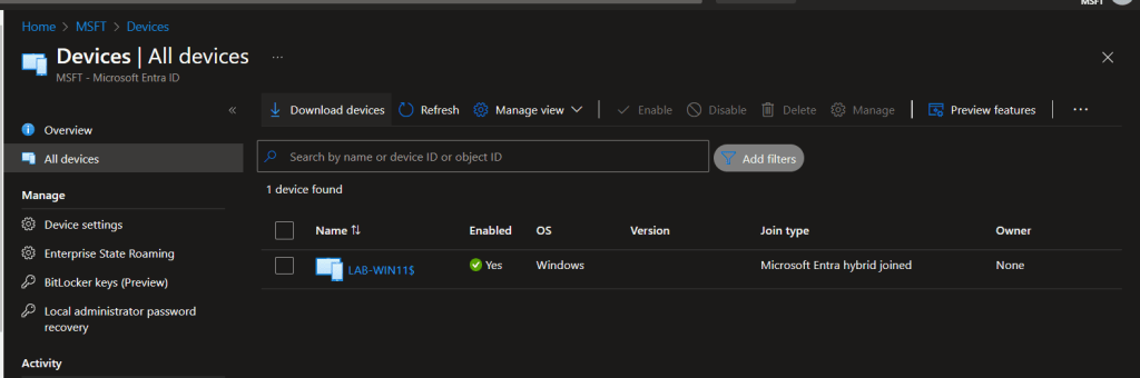 First we need to setup the AD object that will be used by Entra to generate Kerberos TGTs.