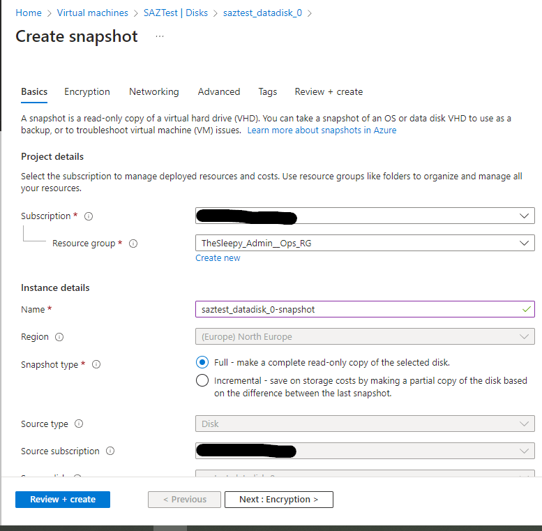Put in the name of the resource group we create manually without the number. In my case this was TheSleepyAdmin_Backup_RG