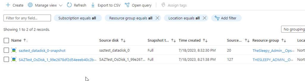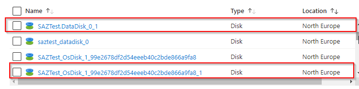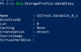 I created a test VM call SAZTest with one data disk, that is not in an availability zone.