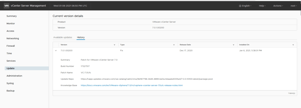 In this post we will go through the process of patching for vCenter 7.0 to the latest version using the GUI connecting to the internet. You can also update using command line or by downloading and mounting the ISO image.