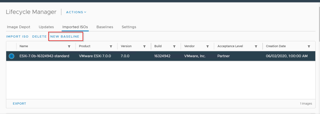 Next we need to create a new upgrade baseline, this can either be done under baseline or by selecting the image and clicking on New Baseline.