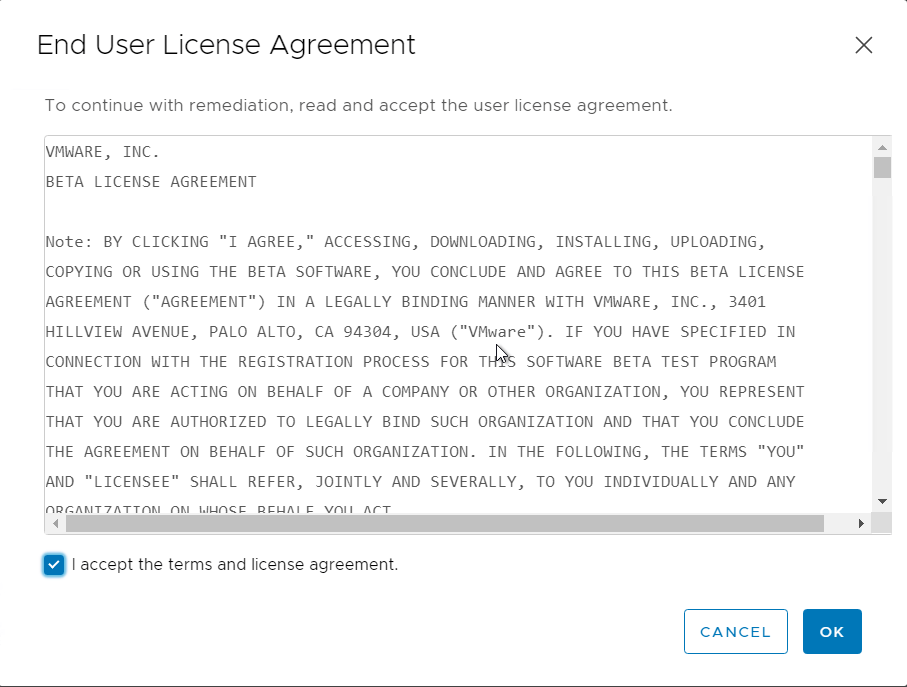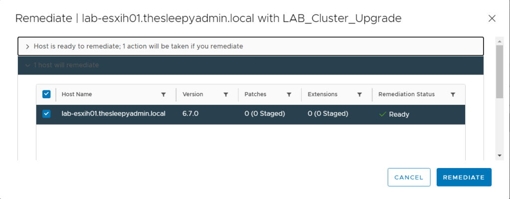 To remediate you can either do this from the cluster or on the individual host. I will remediate from the host itself.