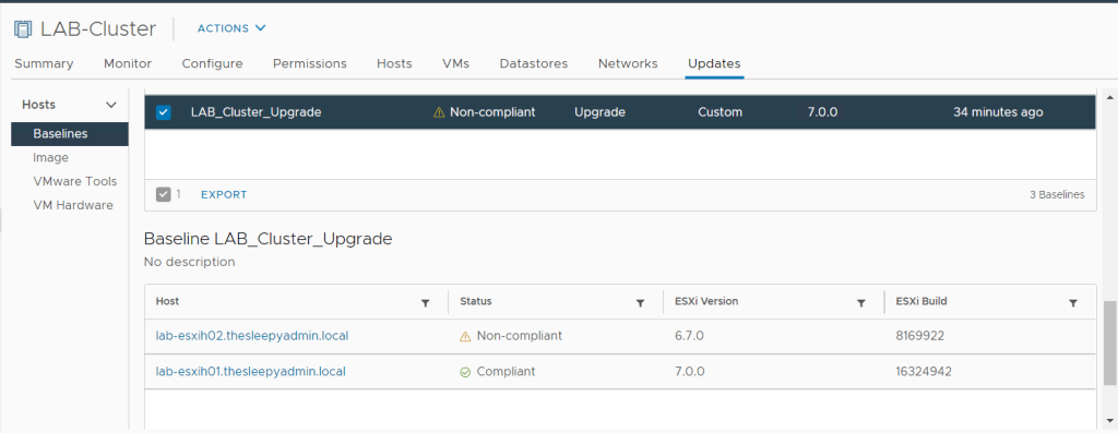 When we check the baseline the host should now show as compliant and running ESXI 7.0.